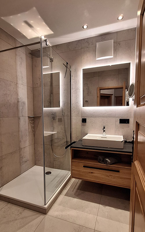 Unsere exklusive und mit 5 Sternen durch den Deutschen Tourismusverband klassifizierte Ferienwohnung Woidnestl im Erdgeschoß hat eine Wohnfläche von ca. 68 qm. Die Wohnküche ist ausgestattet mit einer hochwertigen, vollausgestatteten Küchenzeile, Backofen mit Ceranfeld, Kühlschrank mit Gefrierfach, Kaffeemaschine, Wasserkocher, Toaster, Microstereoanlage inclusive und zudem ein schöner Essbereich. Außerdem befindet sich im Wohnbereich eine Couch zum gemütlichen Beisammensein. Sie haben direkten Zugang zum Garten über die eigene Terrasse. Die Wohnung verfügt über zwei separate Schlafzimmer. Bad mit großer Dusche und WC separat.